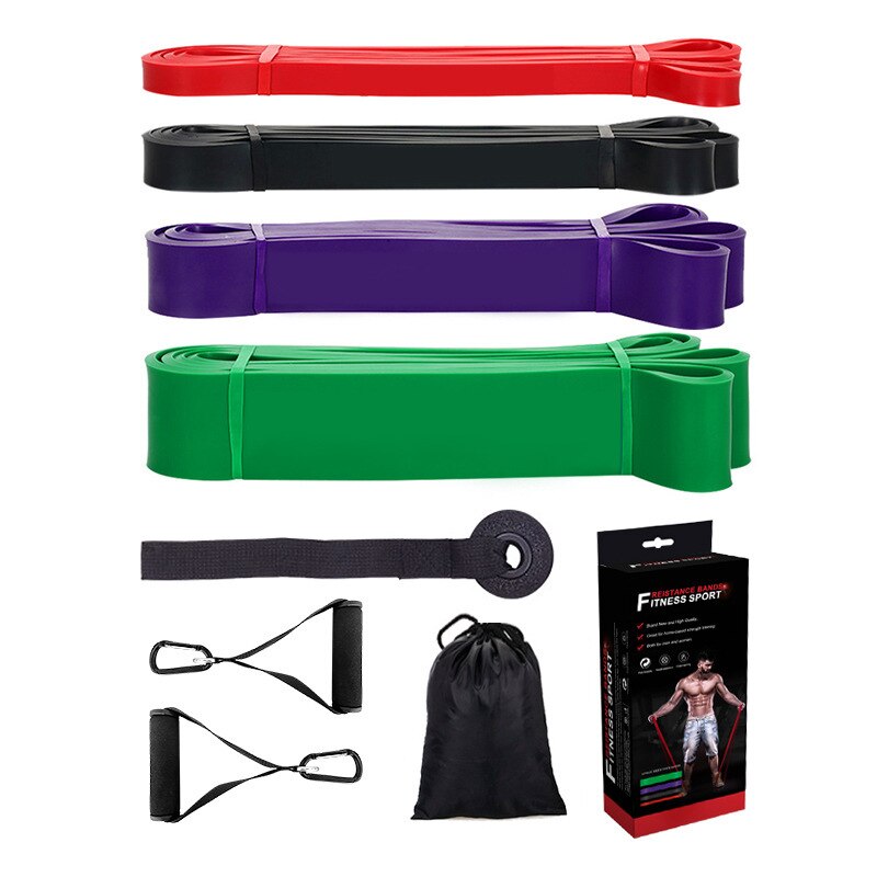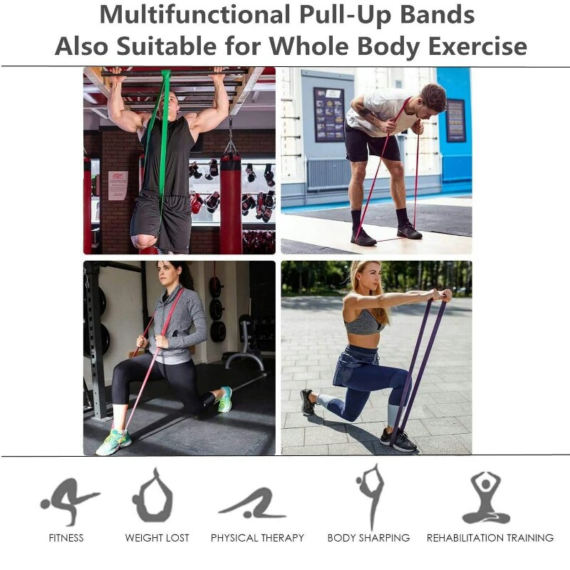 Bandas Elásticas de Resistencia, Paquete de 4 Unidades con Agarre y Bolsa, Entrenamiento Fitness